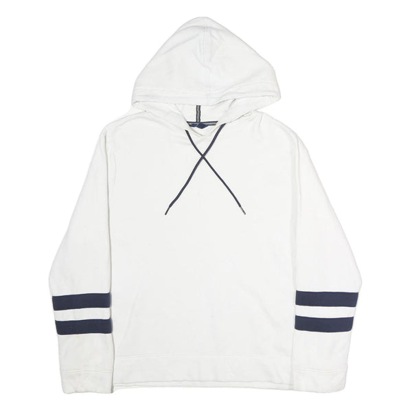 NAUTICA Mens White & Navy Stripe Pullover Hoodie L Cotton Casual Wear