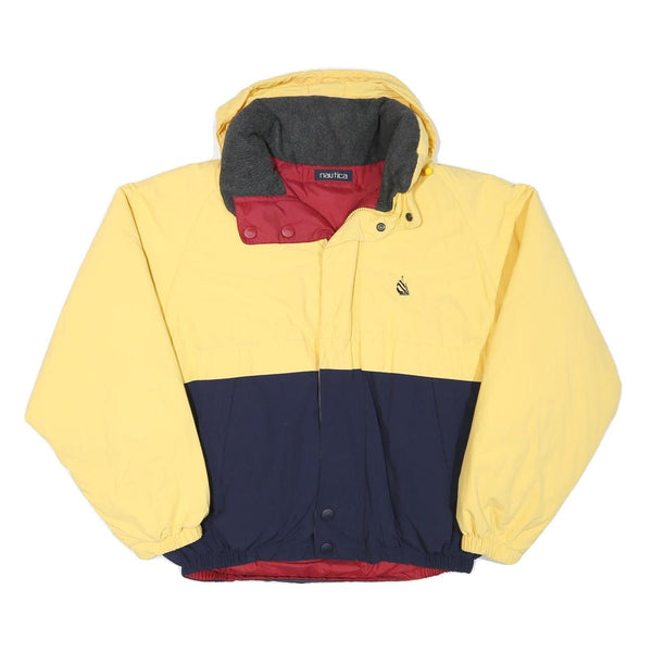 NAUTICA Mens Yellow & Navy Polyester Blend Zip Jacket L Hooded Colourblock
