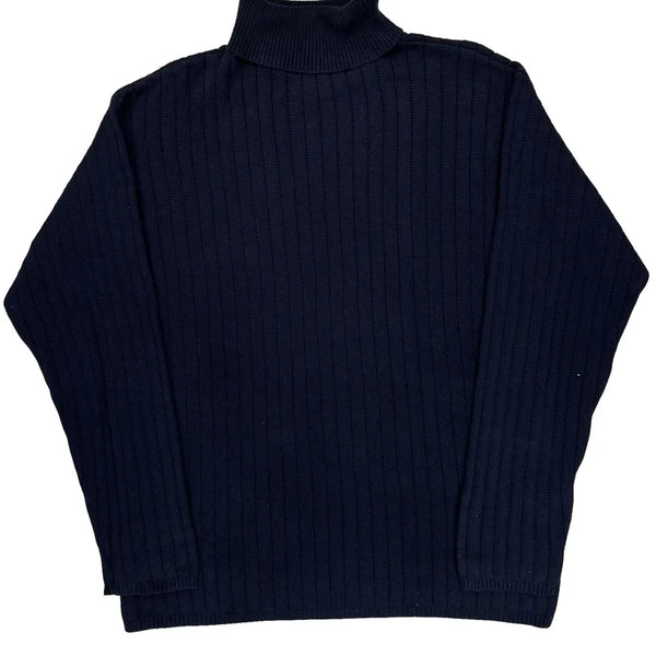 Ribbed Navy Turtle Neck Top