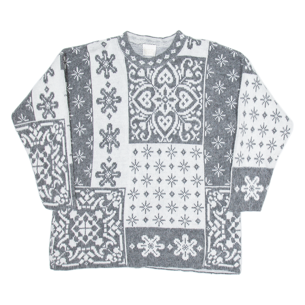 NEEDLE & YARN Womens Patterned Jumper Grey Crazy Pattern Tight Knit L