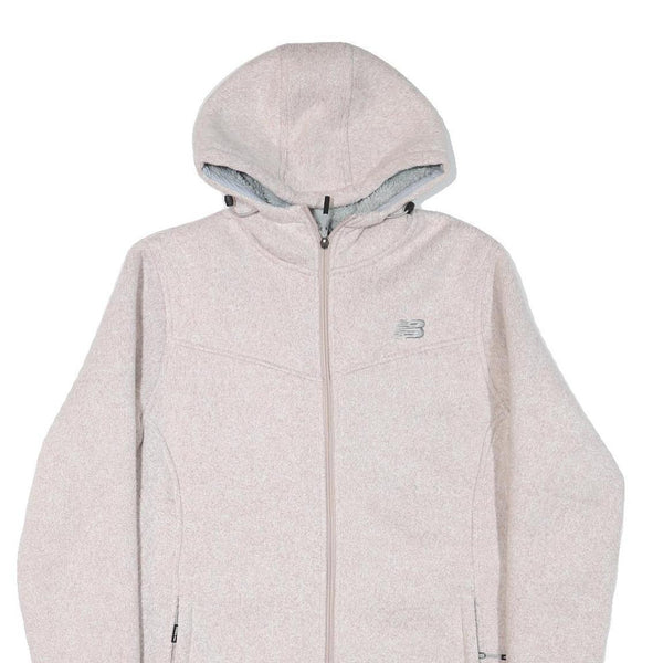 New balance womens cream hooded zip jacket l polyester blend plain lightweight