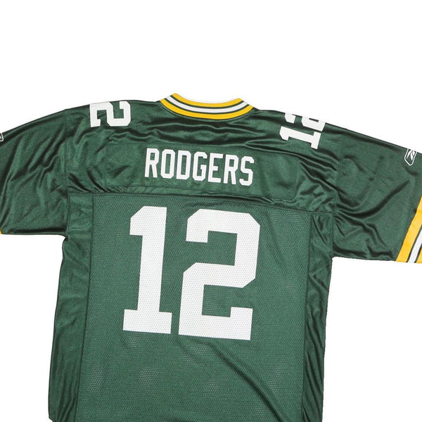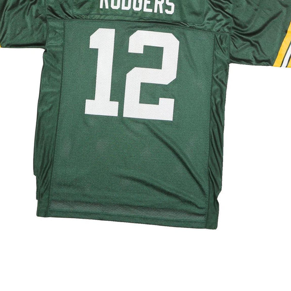 Home NFL Mens Green & Yellow Football Shirt L Short Sleeve V-Neck Rodgers 12 Jersey