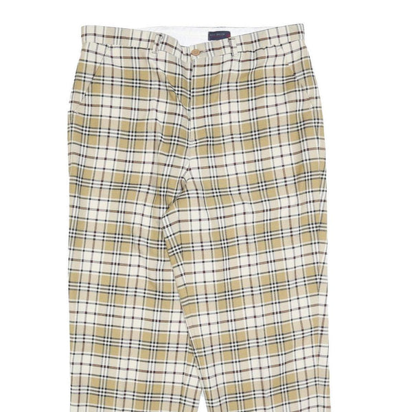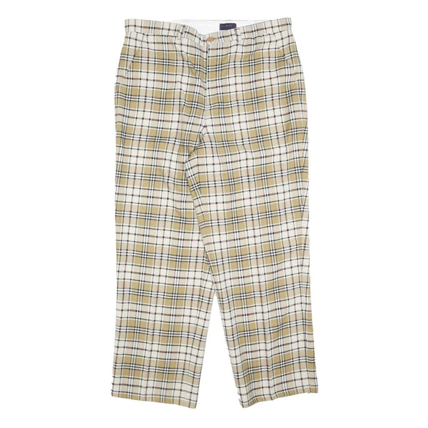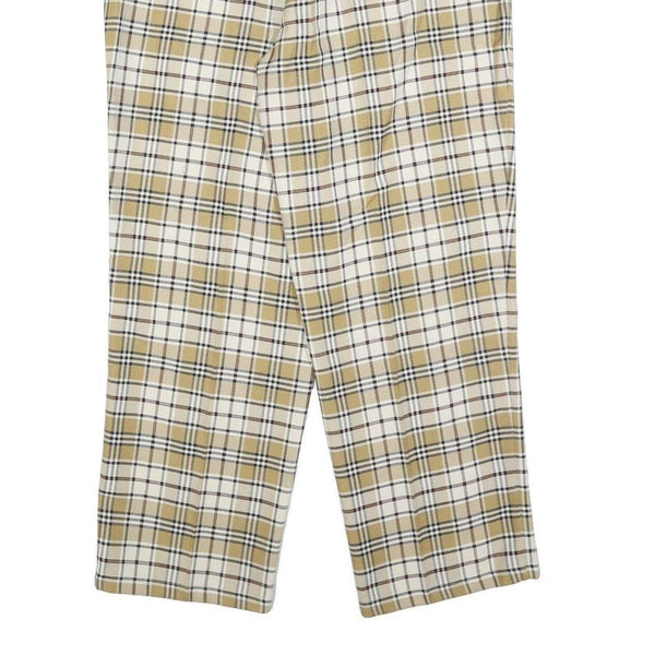 NICK TAYLOR Womens Polyester Blend Beige & Cream Check Relaxed Straight Trousers