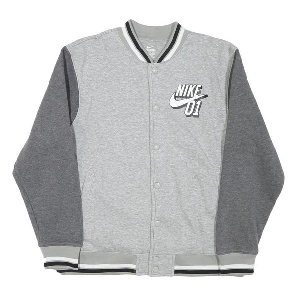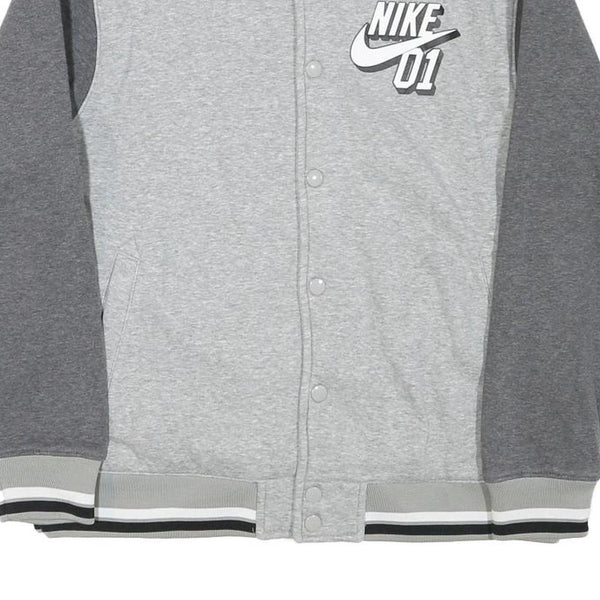 NIKE Boys Grey & Dark Grey Varsity Jacket XL Cotton Blend Button Bomber Plain