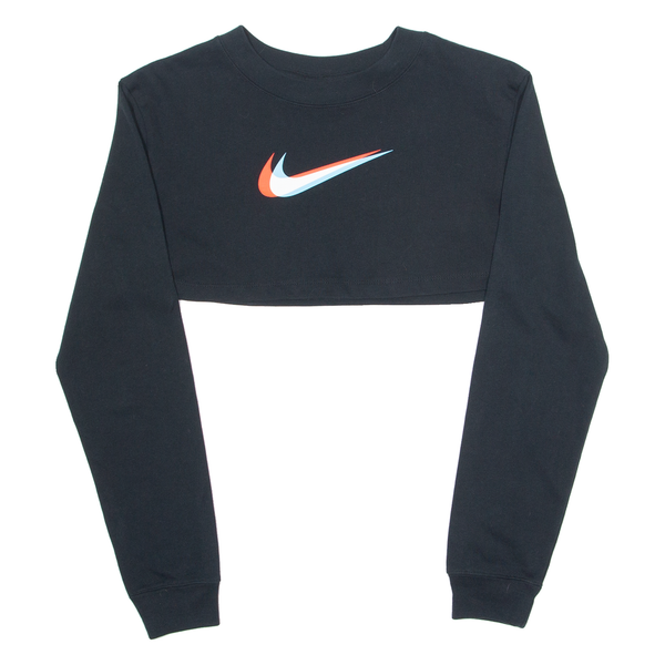 NIKE Cropped Loose Fit Womens T-Shirt Black Long Sleeve Crew Neck XS