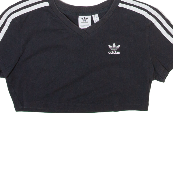 NIKE Cropped Womens T-Shirt Black V-Neck UK 8