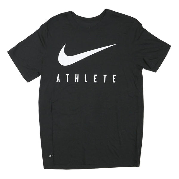 This Nike Mens T-Shirt is crafted in black with a bold white Nike swoosh above the word 'ATHLETE' printed prominently across the chest. It features a classic crew neckline and short sleeves for a timeless, versatile look.