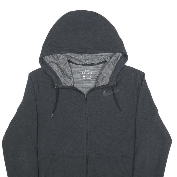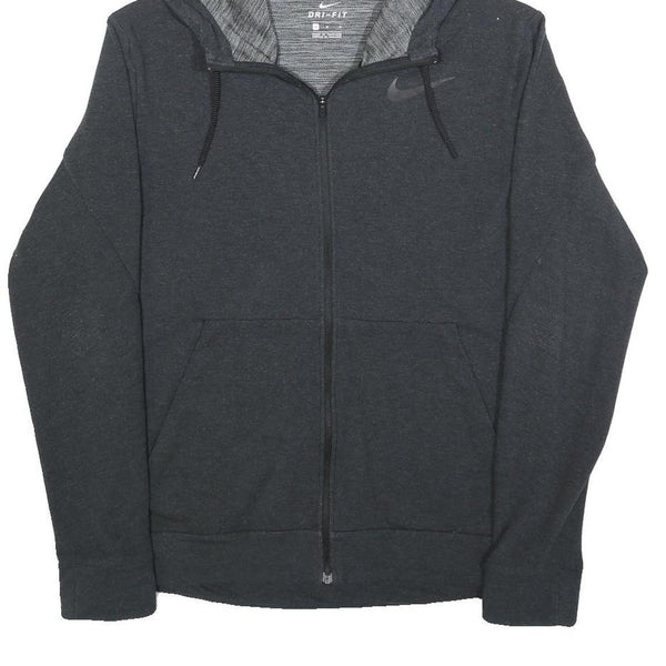 NIKE Mens Black Grey Cotton Blend Full Zip Hoodie M Dri-FIT Lightweight