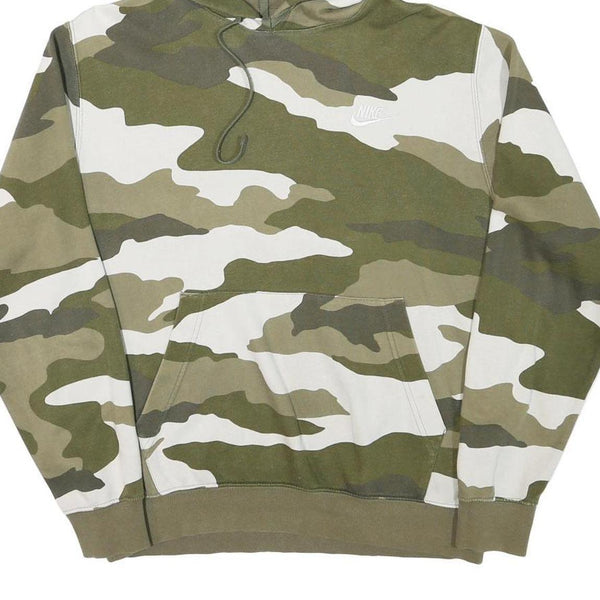 NIKE Mens Green Camouflage Hoodie M Cotton Blend Pullover Hooded Sweater