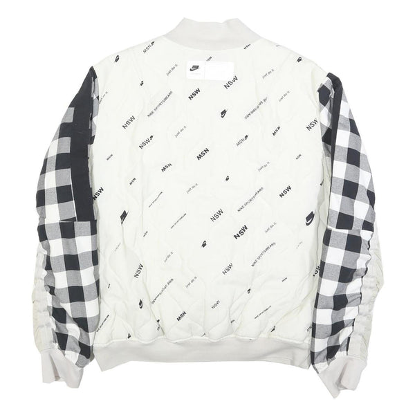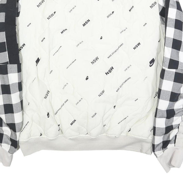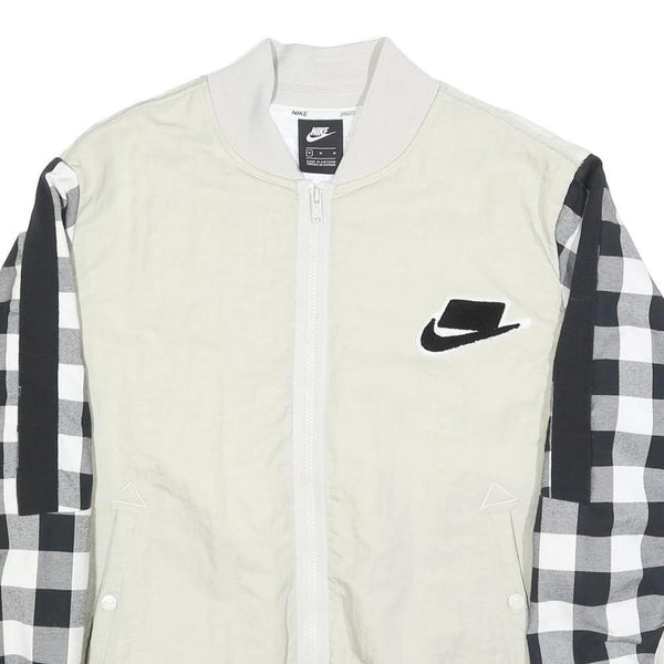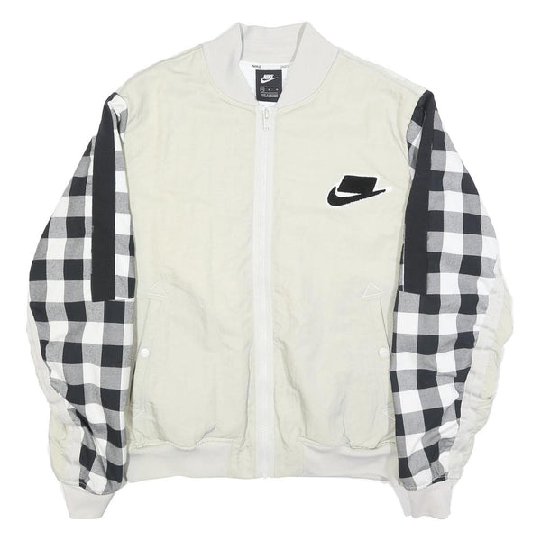 NIKE Mens White & Black Check Bomber Jacket M Nylon Plain Zip Casual Sports
