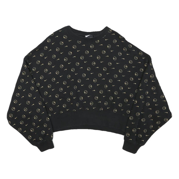 NIKE Womens Black Crew Neck S Sweatshirt All Over Print Cotton Blend