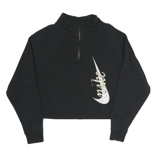 NIKE Womens Black Cropped 1/4 Zip Sweatshirt M Cotton Blend Casual
