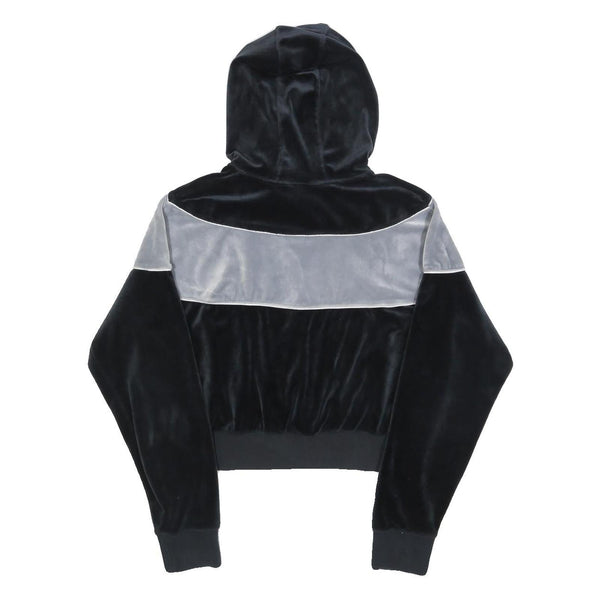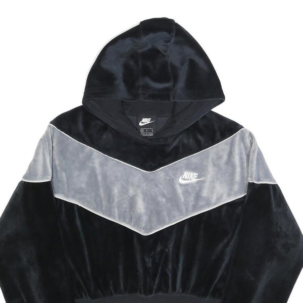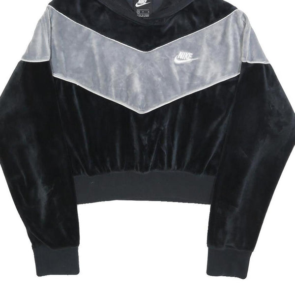NIKE Womens Black & Grey Velvet Cropped Hoodie M Stylish Casual Sweatshirt