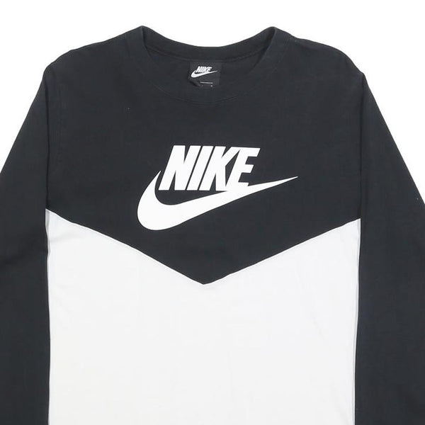 NIKE Womens Black & White Long Sleeve Crew Neck T-Shirt L Cotton Blend Casual