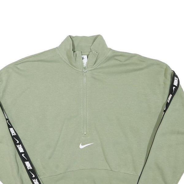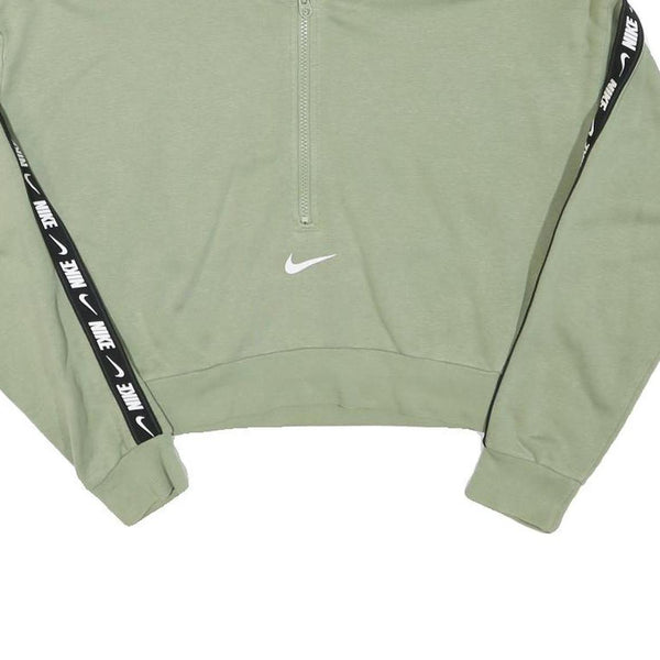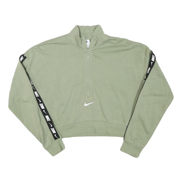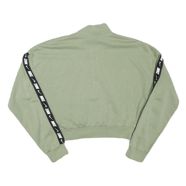 NIKE Womens Green Crop Half Zip Sweatshirt XS Nike Logo Tape