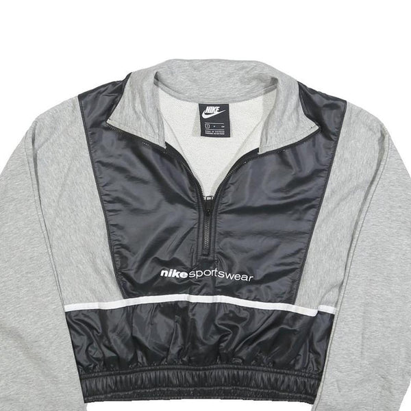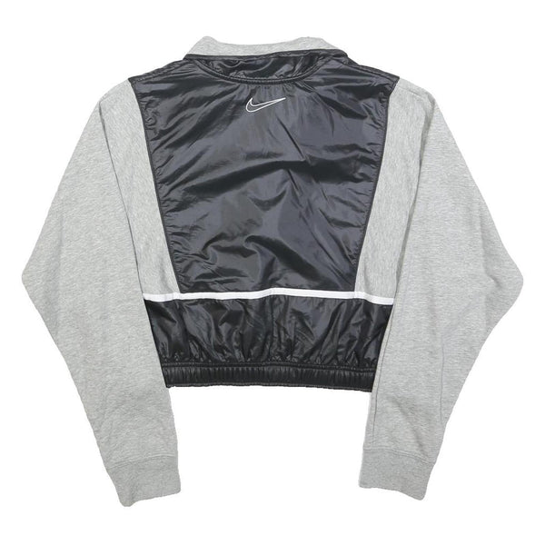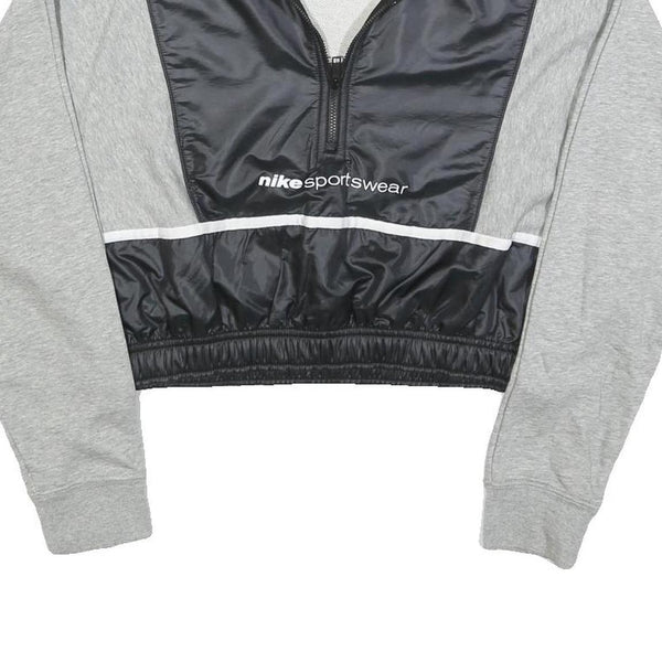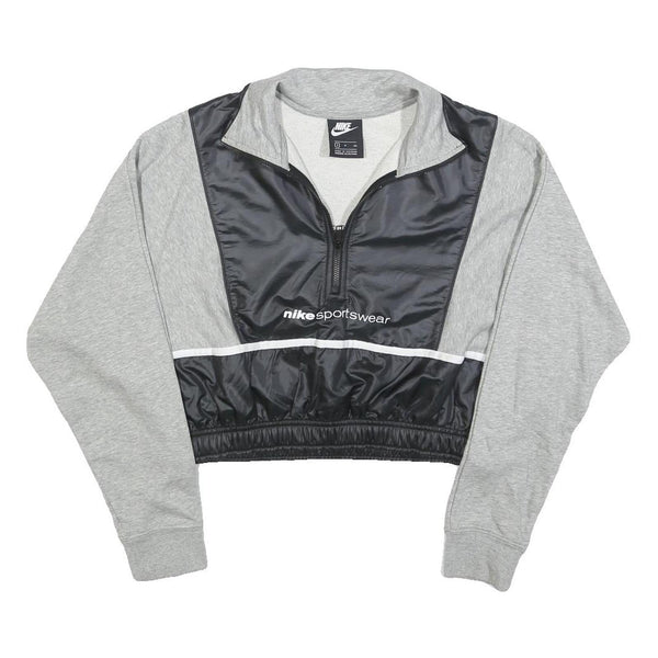 NIKE Womens Grey & Black Sportswear Pullover Sweatshirt S Cropped Half Zip