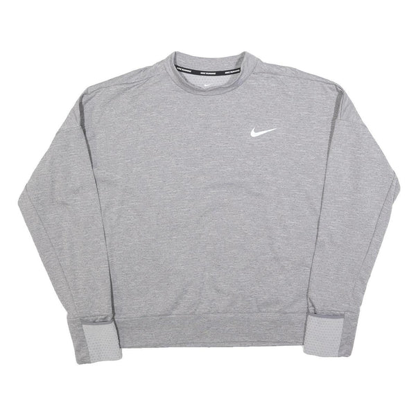 NIKE Womens Grey Crew Neck L Sweatshirt Nike Swoosh Logo Running Sports