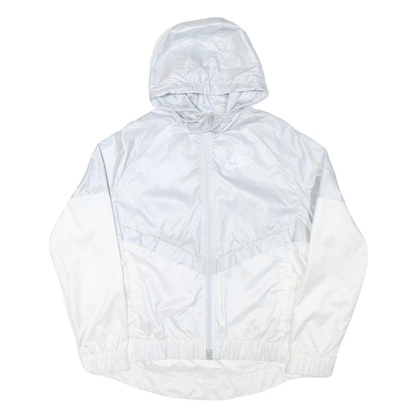 NIKE Womens White Lightweight Hooded Zip Jacket L Polyester Blend Plain