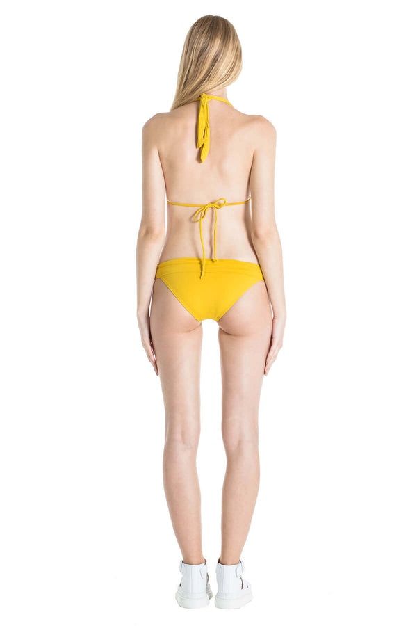 Classic with a twist, the Nina bikini bottoms in Mustard have adjustable gold clasps that offer a two-in-one look