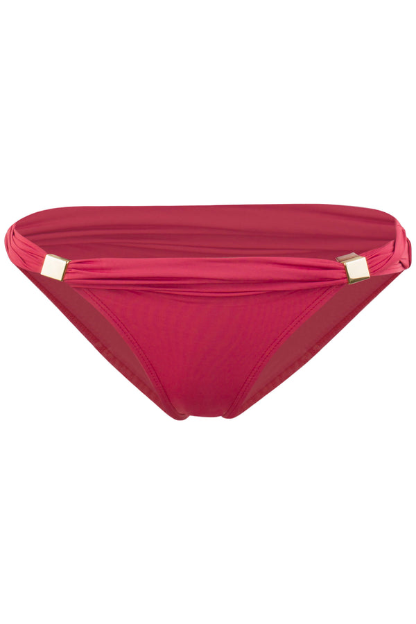 Classic with a twist, the Nina bikini bottom in terracotta has adjustable gold clasps that offer a two-in-one look