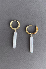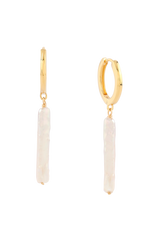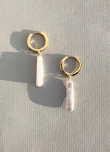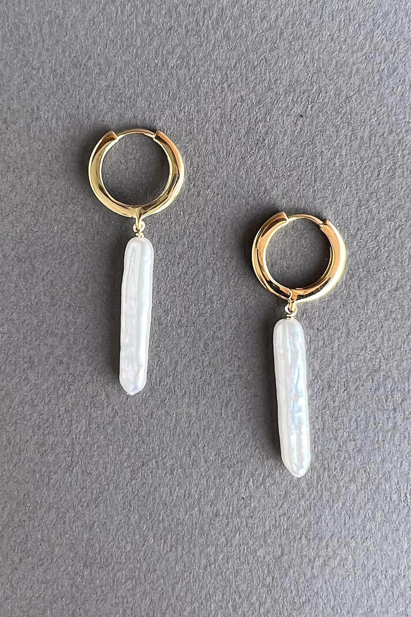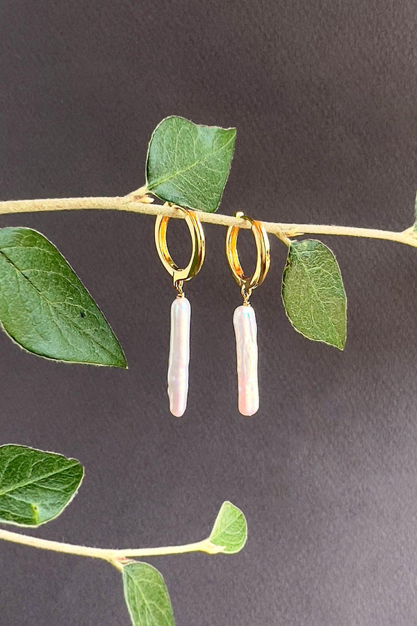 Introducing our Nora Huggie Earrings—a modern and on-trend design with a captivating long freshwater pearl dangle. Embrace the comfortable and lightweight huggie hoop closure, making these earrings a joy to wear all day. Experience the graceful motion of the pearl as it sways delicately, adding an elegant touch to your every movement