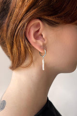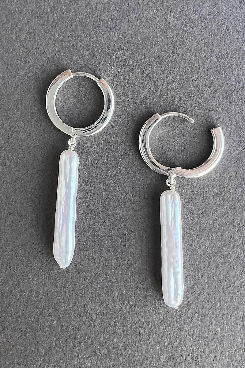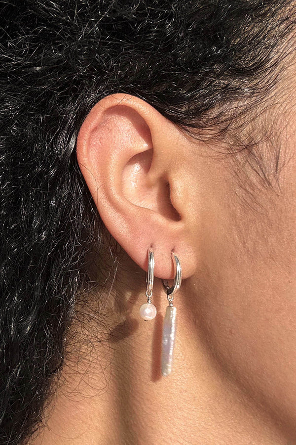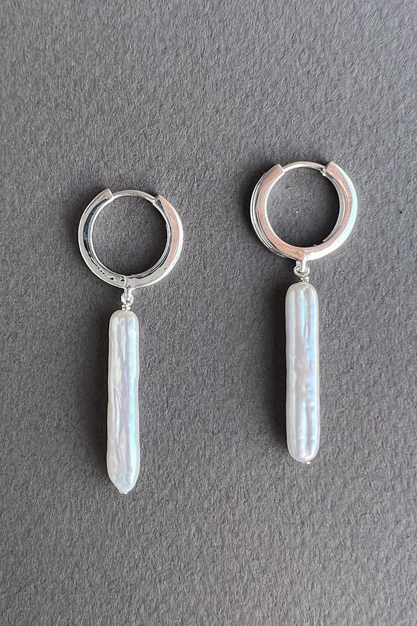 Introducing our Nora Huggie Earrings—a modern and on-trend design with a captivating long freshwater pearl dangle. Embrace the comfortable and lightweight huggie hoop closure, making these earrings a joy to wear all day. Experience the graceful motion of the pearl as it sways delicately, adding an elegant touch to your every movement.