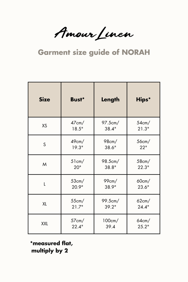 Wash your linen in cold or warm water on a gentle cycle (30-40° / 86-104F). Best to dry naturally in a shady spot. We recommend not using a dryer; you may iron if needed (although we prefer our linen wrinkled!). Do not dry clean as it weakens the fiber.
