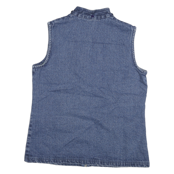 NORTH STYLE Womens Blue Denim Sleeveless Jacket L Cotton Zip Plain Stylish