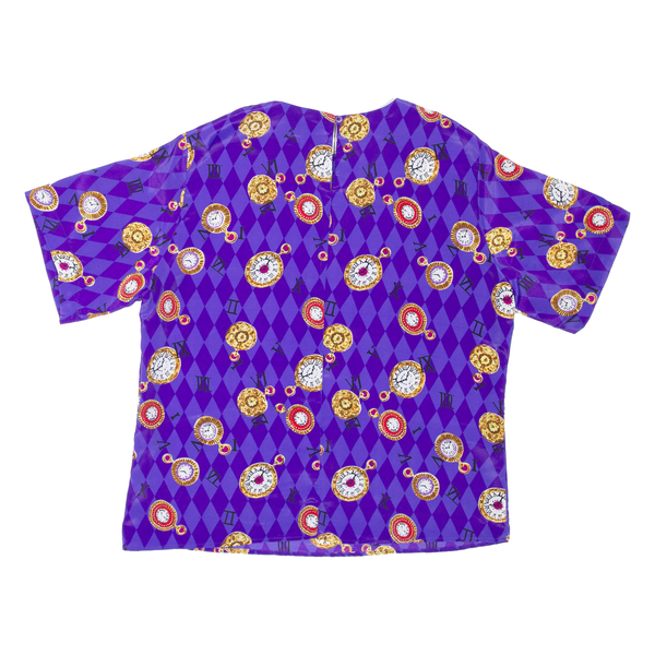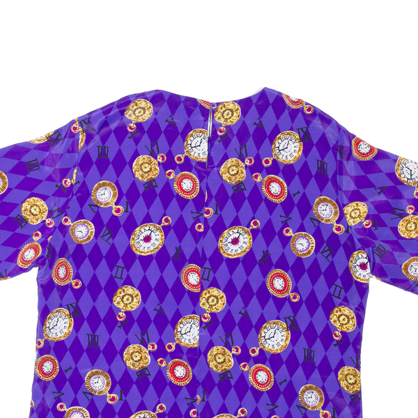 NOTATIONS Clock Print Womens Cropped Top Purple Crazy Pattern M
