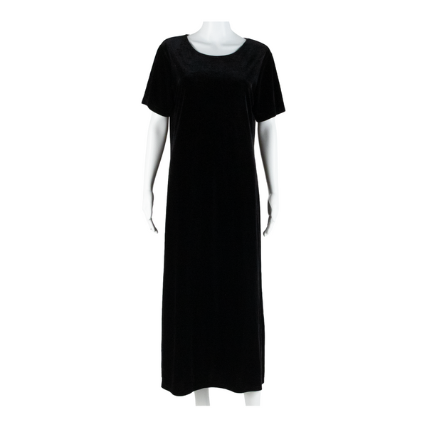 NOTATIONS Womens T-Shirt Dress Black Velvet Short Sleeve Midi L