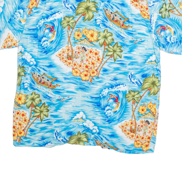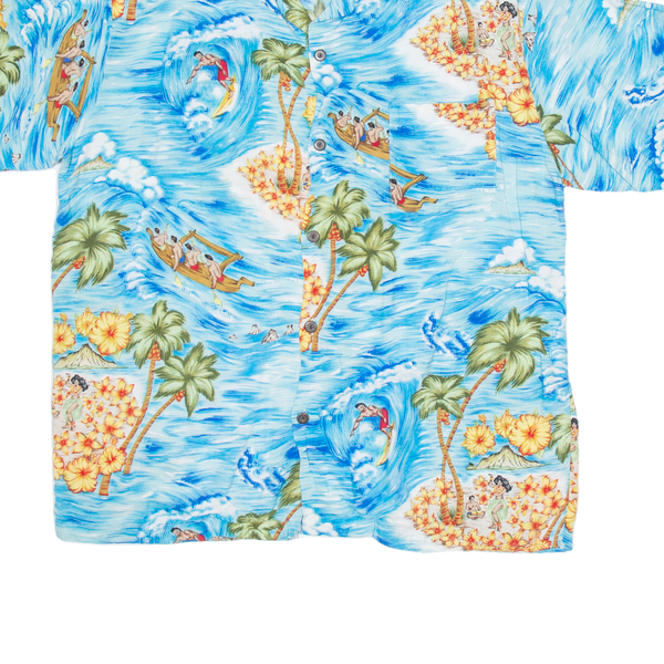 OCEAN CURRENT Mens Hawaiian Shirt Blue Floral L