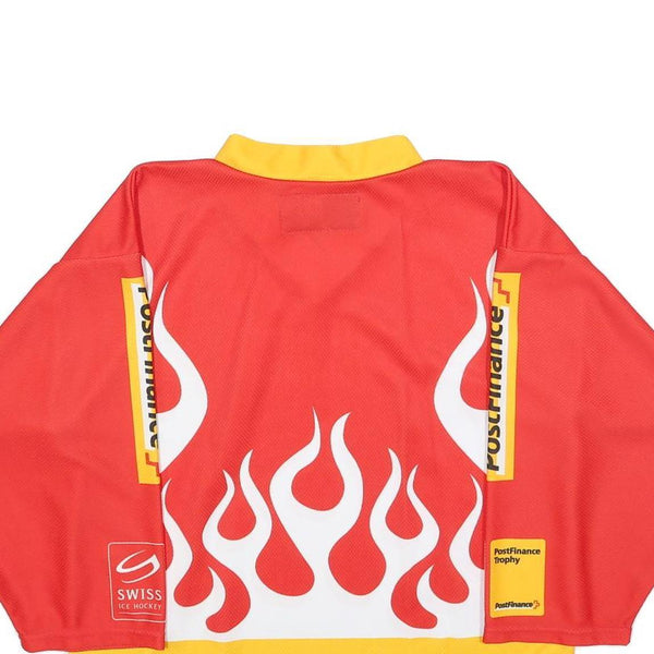 OCHSNER HOCKEY Boys Red & Yellow PostFinance Trophy Long Sleeve V-Neck Jersey L