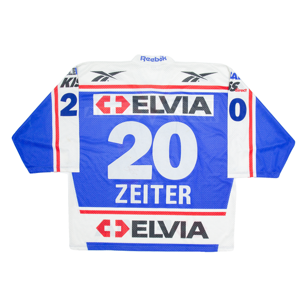 Ochsner zsc lions signed hockey mens jersey blue long sleeve v-neck l