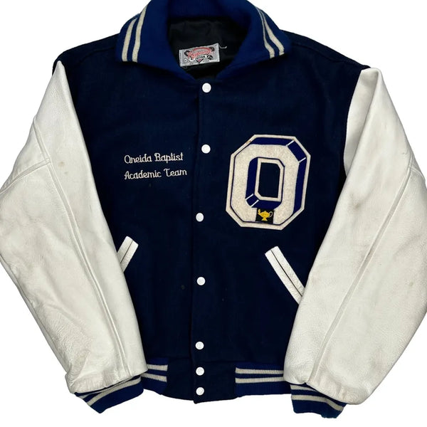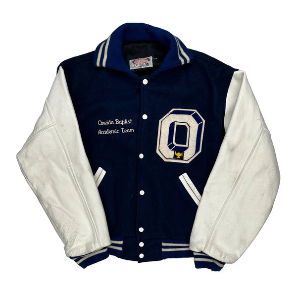 Oneida baptist academic team keystone college varsity jacket - 2xl blue wool blend