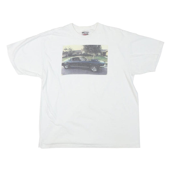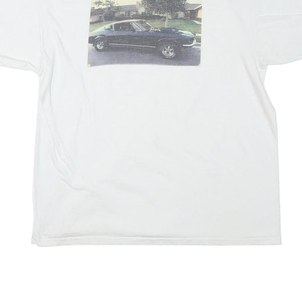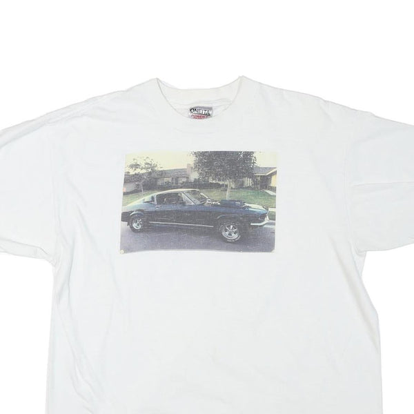 ONEITA Mens White Car Graphic T-Shirt XL Short Sleeve Crew Neck Cotton Blend