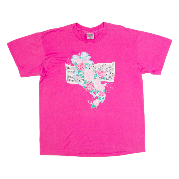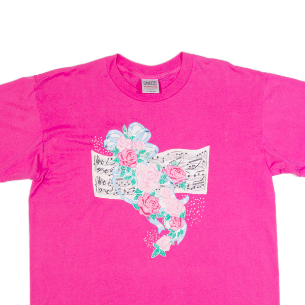 ONEITA Music Flowers Mens T-Shirt Pink 90s XL