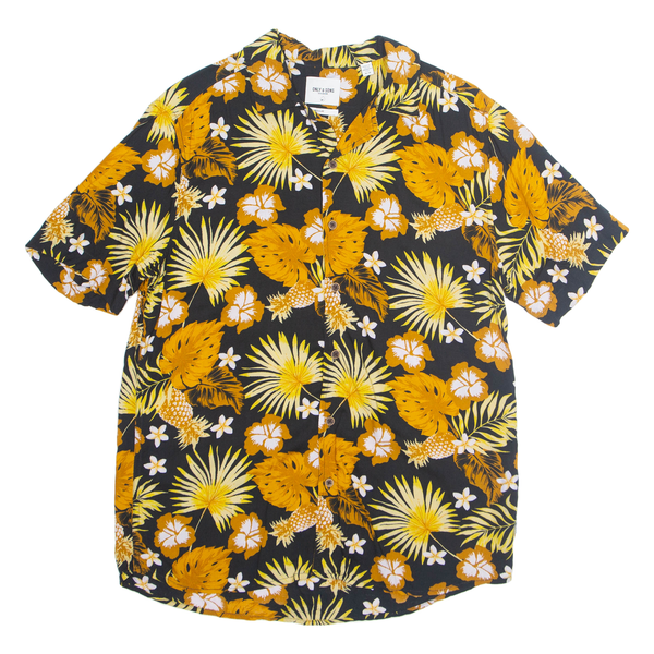 Only & sons mens hawaiian shirt yellow viscose floral short sleeve m
