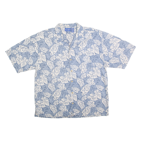 OP Mens Blue & White Hawaiian Shirt XL Leaf Print Summer Casual Button-Up