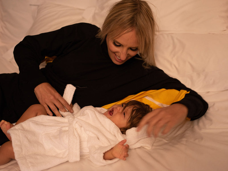 The stylish bird–wings sleeves were based on the Golden–Winged Cacique colours. Roll the organic high neck up and down for extra warmth after a long day out. Combine it with our matching long trousers or leggings with socks and sleep beautifully.