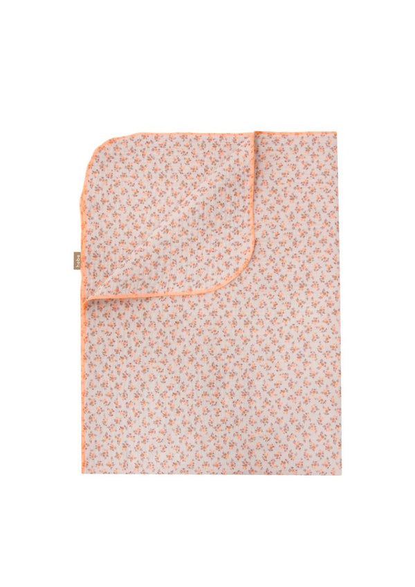 The breathable organic muslin baby blanket with a small floral print and orange finish is the most adorable and soft blanket to touch and with no nasties in there. Made from organic muslin and is very breathable and light, made by Hebe in Latvia.