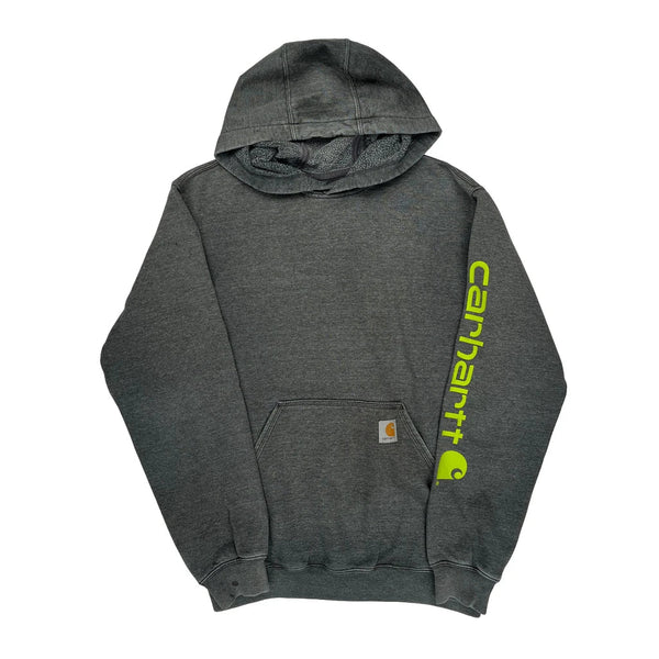 Grey Carhartt Hoodie With Neon Green Logo On Sleeve