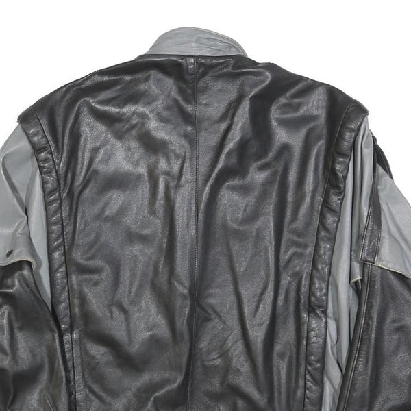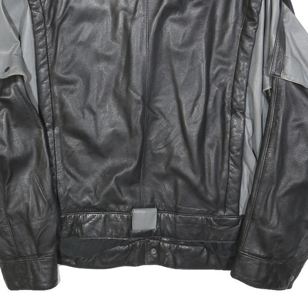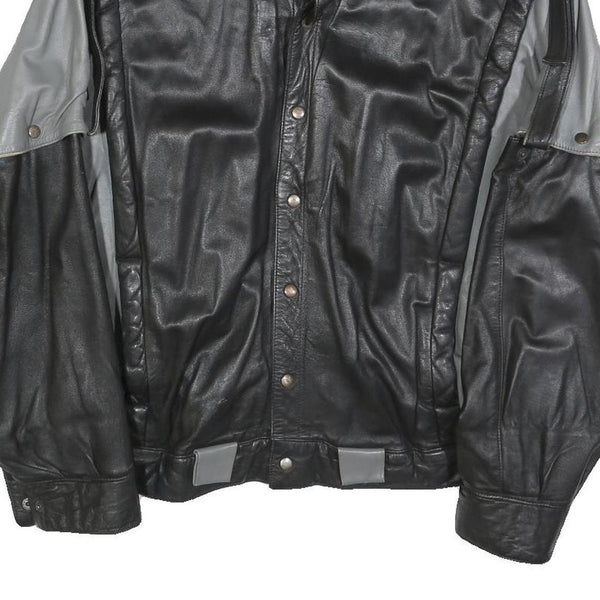 OSKAR Mens Black & Grey Leather Button Jacket M Casual Stylish Outerwear
