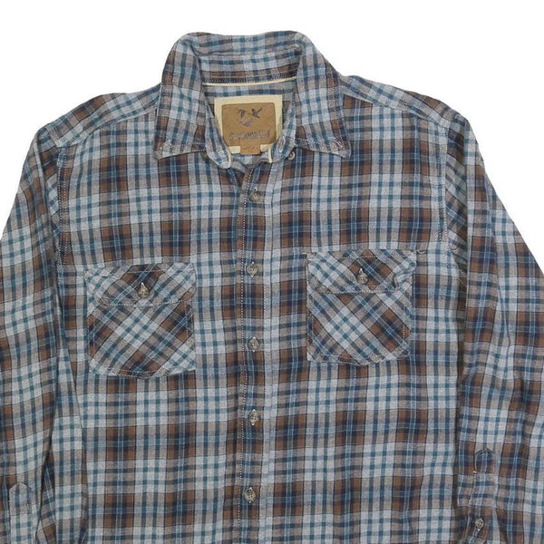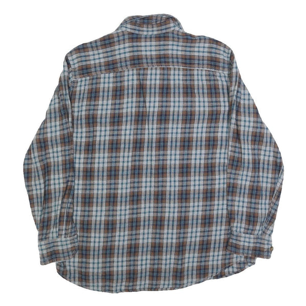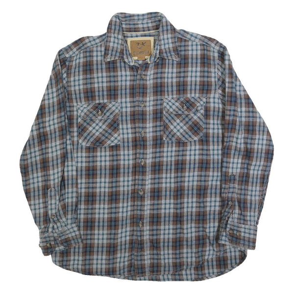 OUTDOOR LIFE Mens Blue & Brown Check Shirt L Cotton Blend Long Sleeve Button