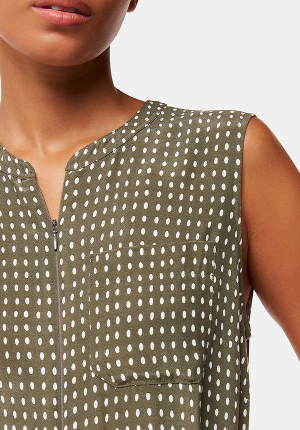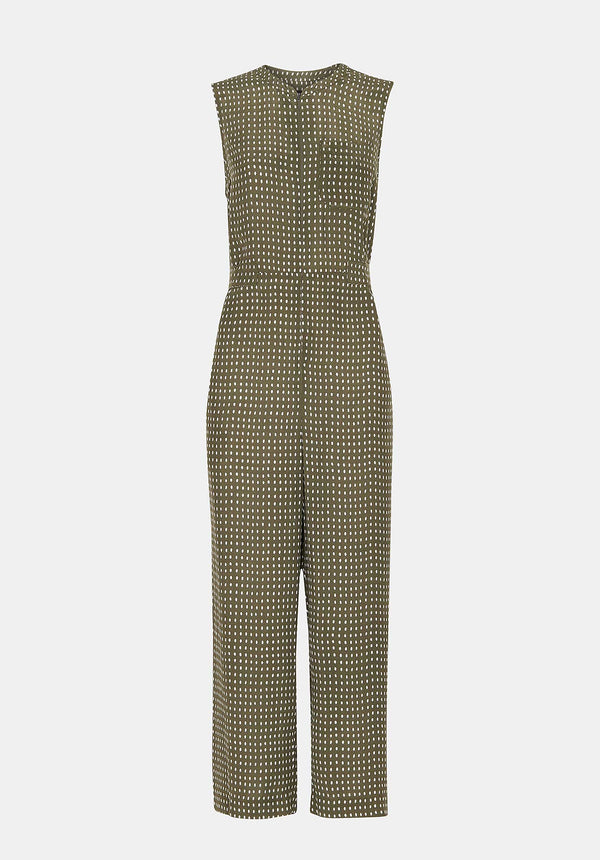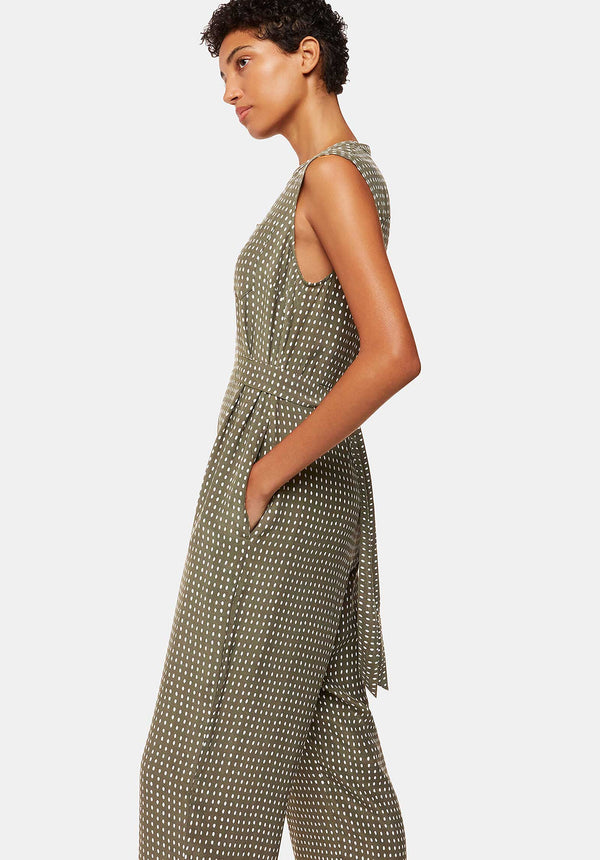 Our latest jumpsuit promises laid-back comfort for effortless style. It comes in a khaki shade with oval spot prints and sleeveless. Its adjustable at the waist to give you the best silhouette. Wear it with ballet pumps.