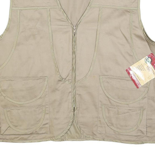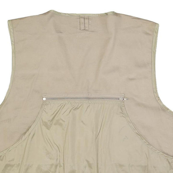 OZARK TRAIL Mens Beige Cotton Zip Vest XL Woven Utility Outdoor Pocket