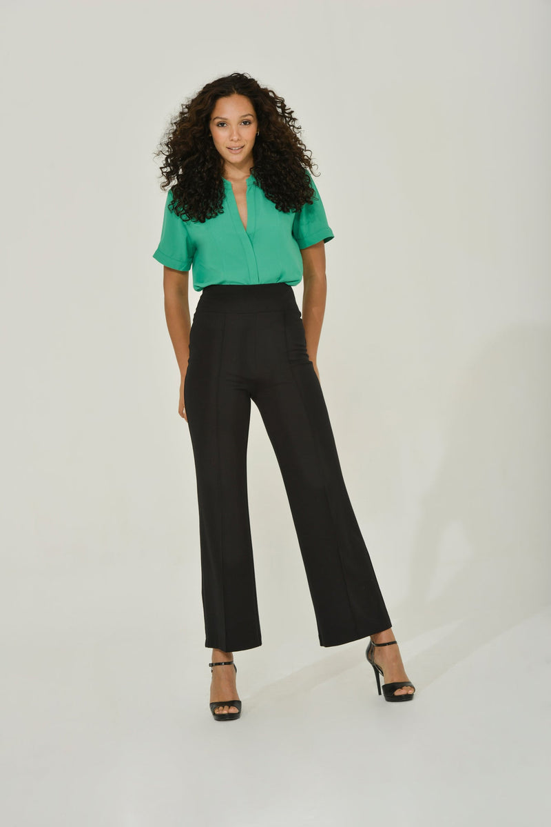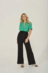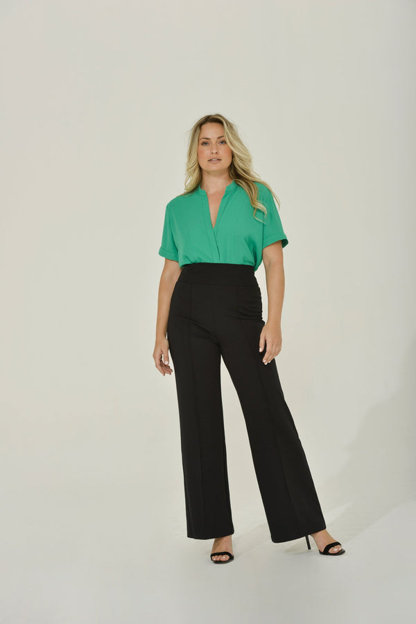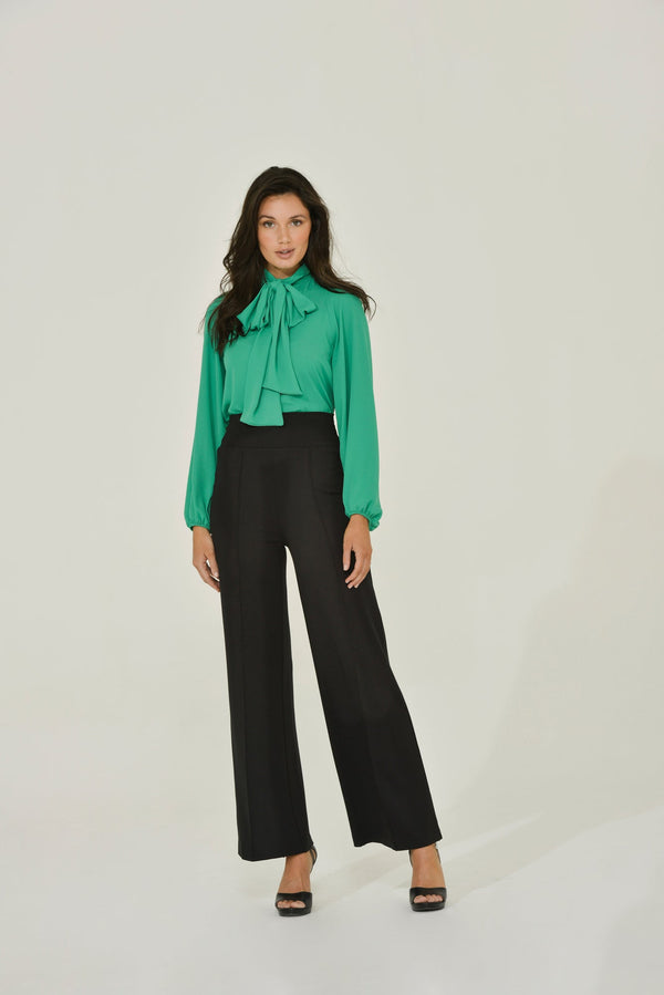 Our signature eco-friendly black stretch pintuck palazzo pant is a chic addition to every woman's essential wardrobe. We have combined the performance and comfort of 4-way stretch Ponti-De Roma with master tailoring to create the ultimate year-round, high-waisted Palazzo pant with our signature pintuck. They are designed without buttons, zippers, and pockets for a crisp, sophisticated wide-leg look that will quickly become your go-to favorite for work or play.