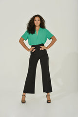 Intention's slimming high-waisted Palazzo pant is part of our interchangeable suiting collection made from body-contouring Ponti-De Roma fabric. This biodegradable fabric passed the Global Recycle Standard (GRS), is OEKO-TEX® Standard 100 certified and free from harmful chemicals including heavy metals. Using an advanced eco-friendly process, the biodegradable Ponti-De Roma fabric is dipped dyed in the same Jet-Black to perfectly mix and match our pieces for a stunning earth-friendly addition to your essentials wardrobe.