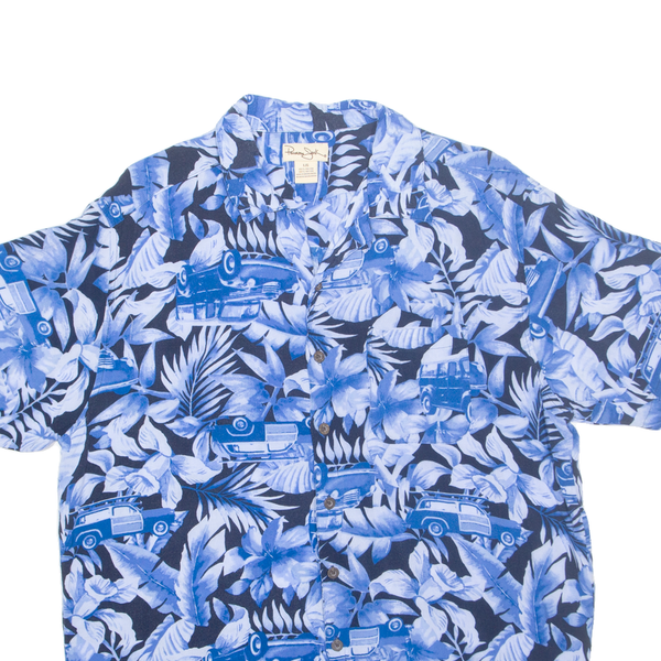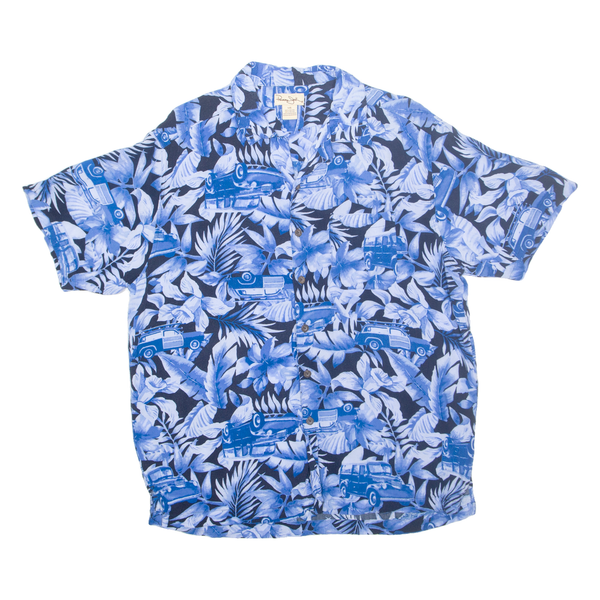 PANAMA JACK Mens Hawaiian Shirt Blue Floral L