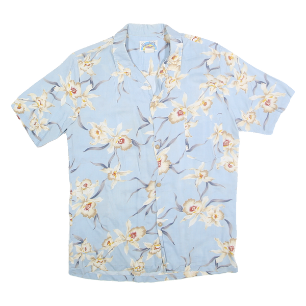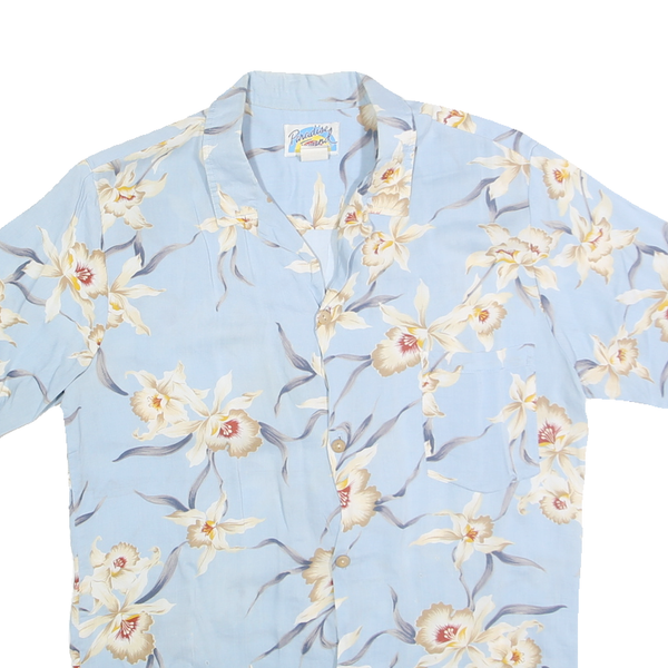 Paradise island mens blue floral rayon shirt s lightweight tropical vacation