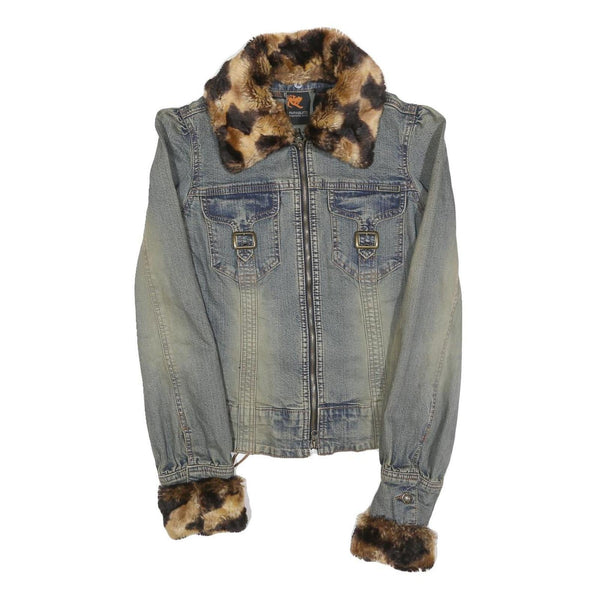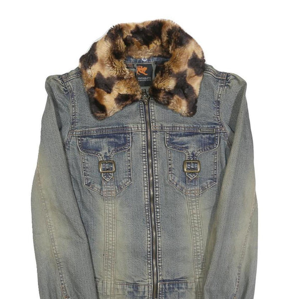 PARASUCO Womens Blue Cotton Blend Denim Jacket S Faux Fur Collar Cuffs Zip